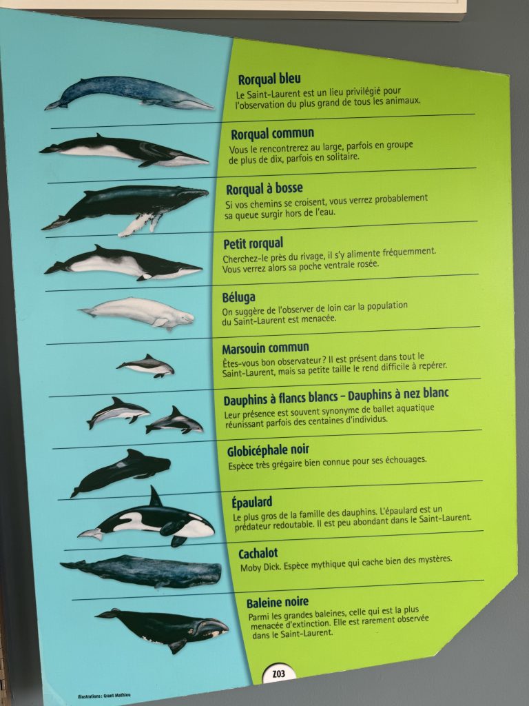 Marine park staff at each of the small educational centers we visited were outstanding — welcoming and helpful, gracious in speaking English, well-informed, and passionate about their work. Tadoussac also proved a refreshing change from sometimes French-snobby vibe in other parts of Quebec.