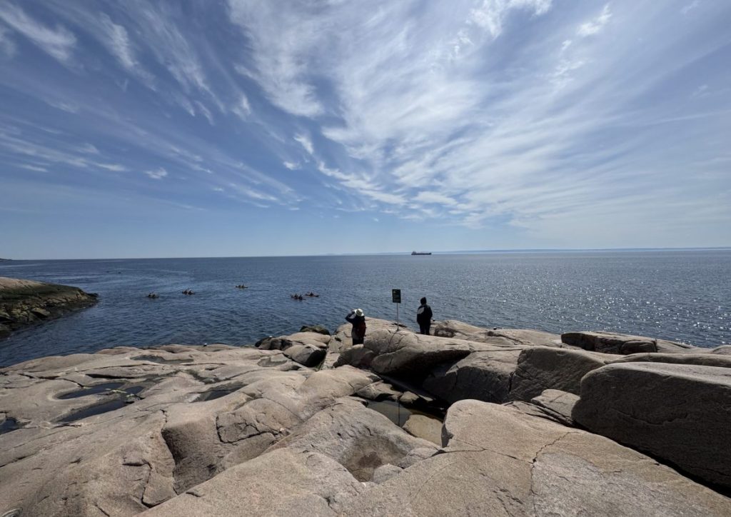 From there, back towards Tadoussac to Cap de Bon-Desire Interpretation and Observation Center, a historic lighthouse settlement with wooded trail to rocky point and expansive whale-watching perspective, but no belugas. This would be the place to spend a full day, we agreed, perched on the rocks with picnic supplies. Next time!