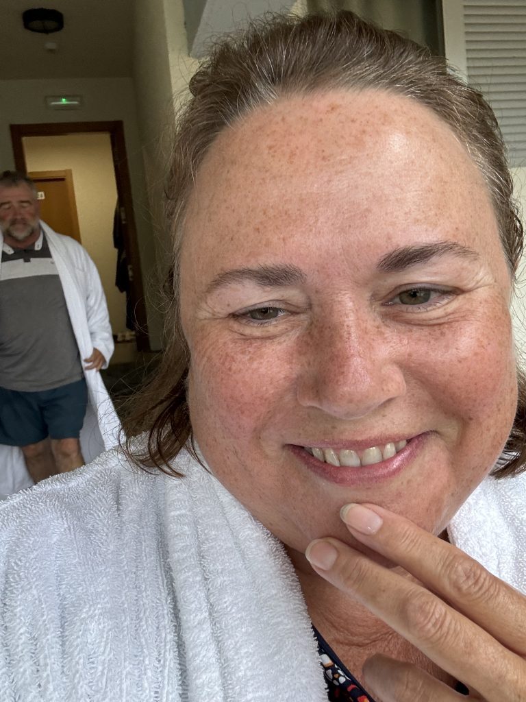 Finally, my Reequilibrio Facial del Camino. I was allowed time to go to my room and change out of my wet suit. The facial was pretty much like any you’ve had. Lovely products; clay, I surmised.