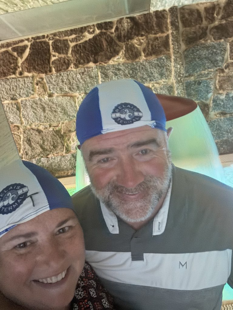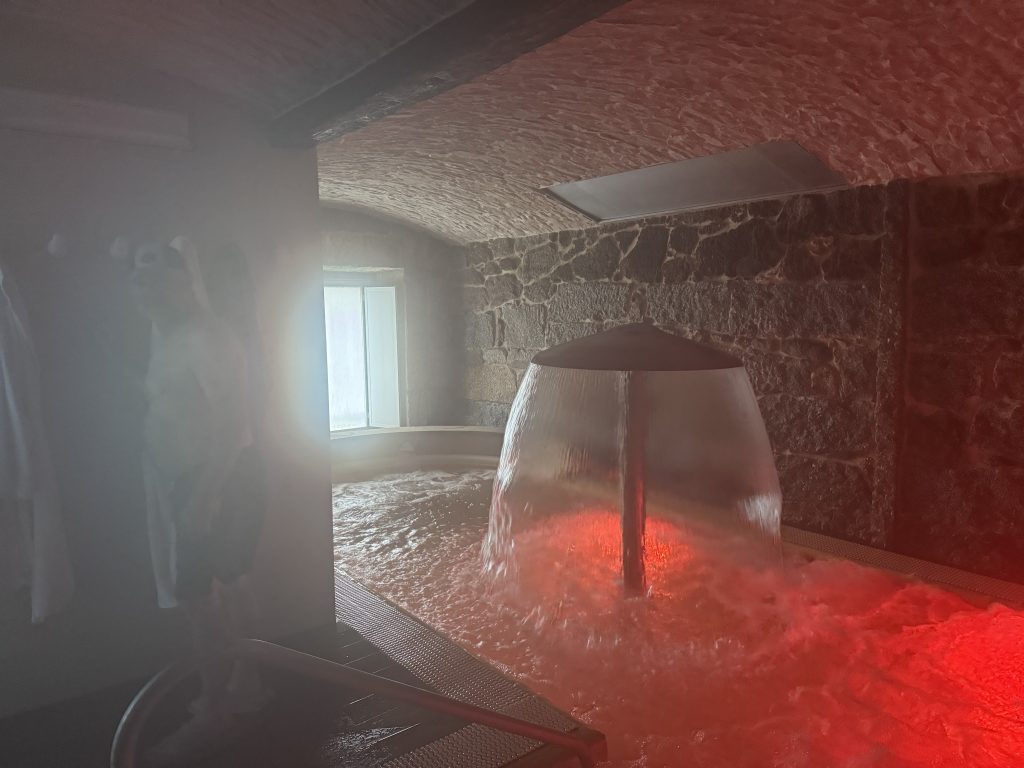 As it turned out, we took the Balneas Murmurantes together. It was a large pool with bubbling thermal waters. Various spouts or vents targeted neck and shoulders; backs or calves. It was perfect. We had the pool to ourselves, rotating through stations at our whim.