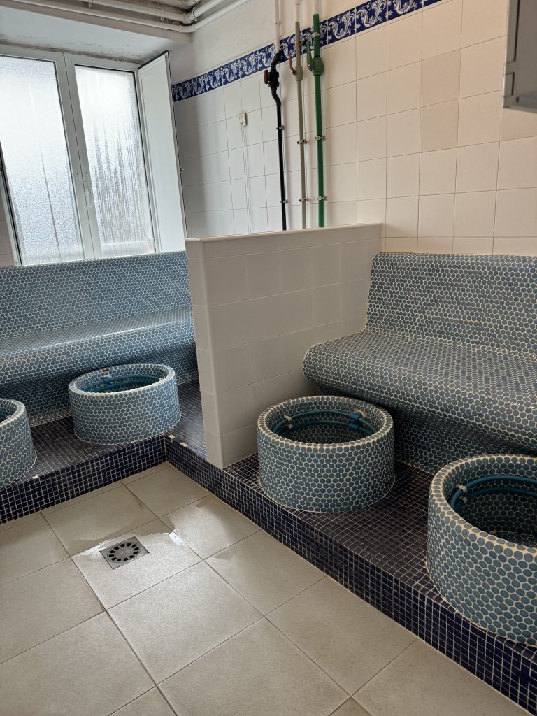 Like those 1800s bathhouses, the Balneario Acuna spa, Relais Terminal, was almost clinical. Spa music was playing but otherwise, not much ambience. I heard loud voices, clanking, doors slamming. The color palette also wasn’t very spa-like, a lot of white.