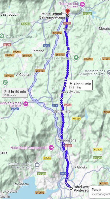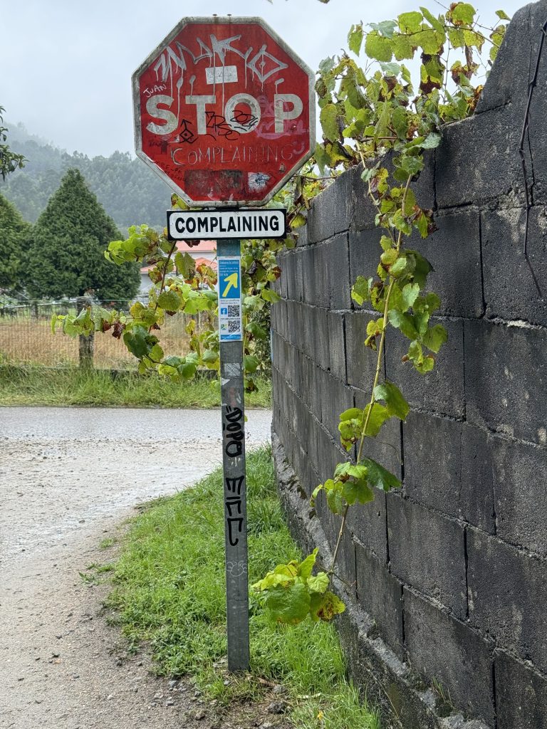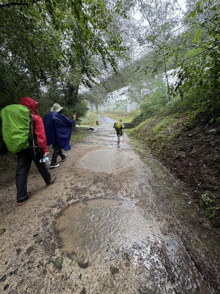 Trekking Pontevedra to Caldas de Reis was a total slog. Like, literally — as grandgirl, Lydia, likes to say. It was a sopping, soaking, drip-dropping immersion experience, start to finish. We enjoyed perhaps 30 minutes of reprieve from the rain all day long.