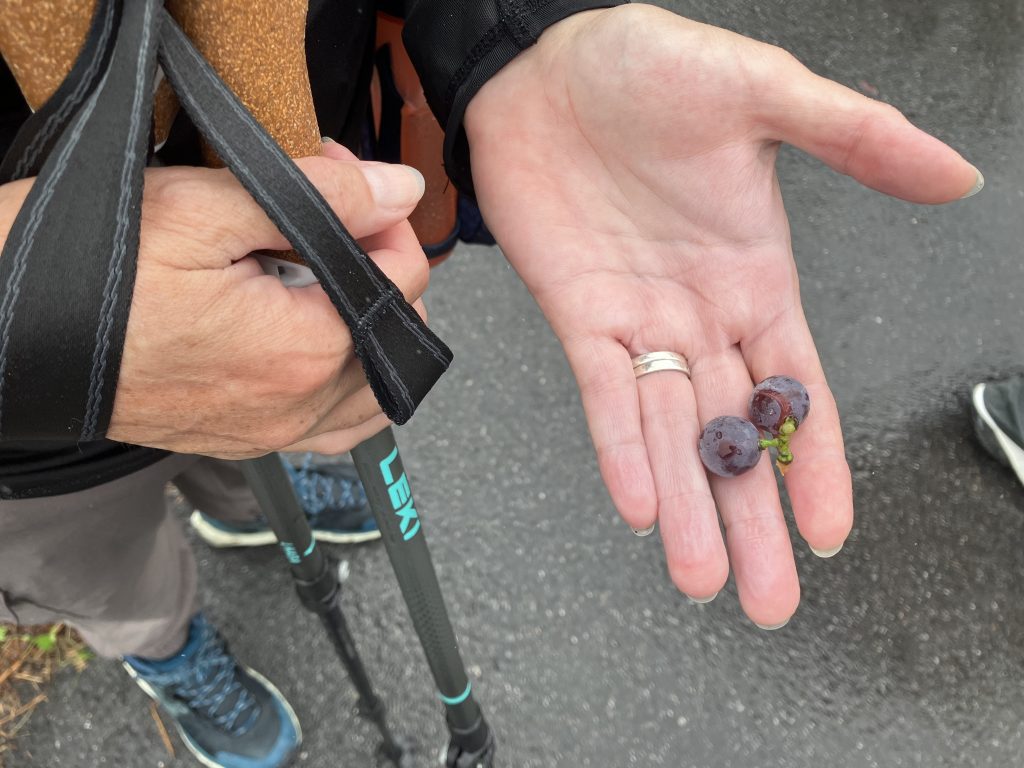 Today there were still some grapes on the vine here — green and red, both small. One stretch, we were trampling stray red grapes underfoot. I always marvel at the use of hewn granite planks to support the vines. So much granite in construction in Galicia — makes sense, given the history, culture and climate.