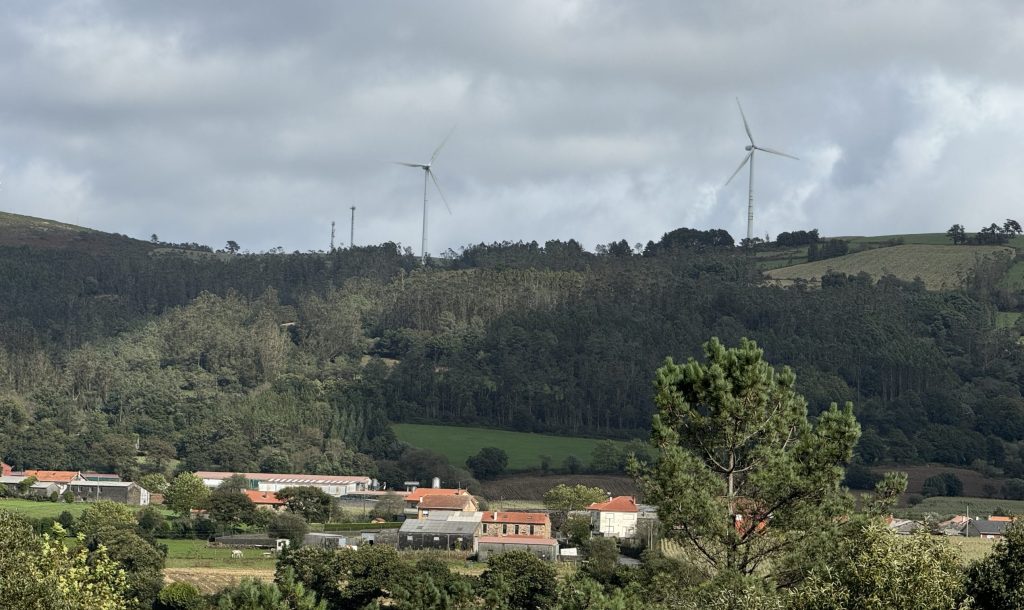 Coming to Mazaricos by taxi as we did, I have more visual imagery than photos. There was a distinct shift from the terrain of these past few weeks. We saw a lot of windmills on the high ridges. Mostly open countryside; rolling hills sloping into valleys sprinkled with farms and small villages. Massive chestnuts, hanging heavy with bright green ripened pods, impossible to miss.