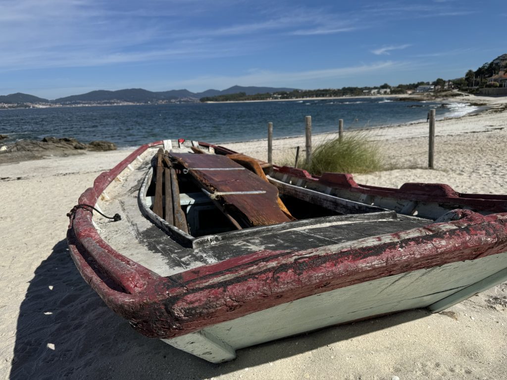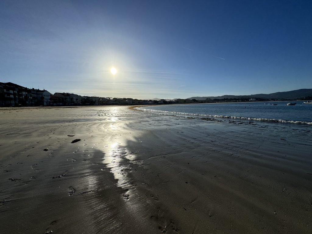 Our journey to Vigo was a quirky combination of roadside, residential, and beach trekking. Much was flat but some good hills, too. We could often see the sea, even if we were walking well above it.