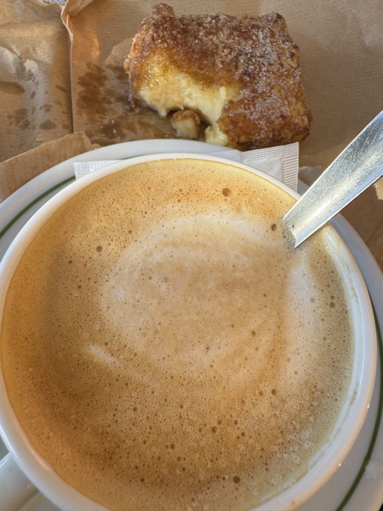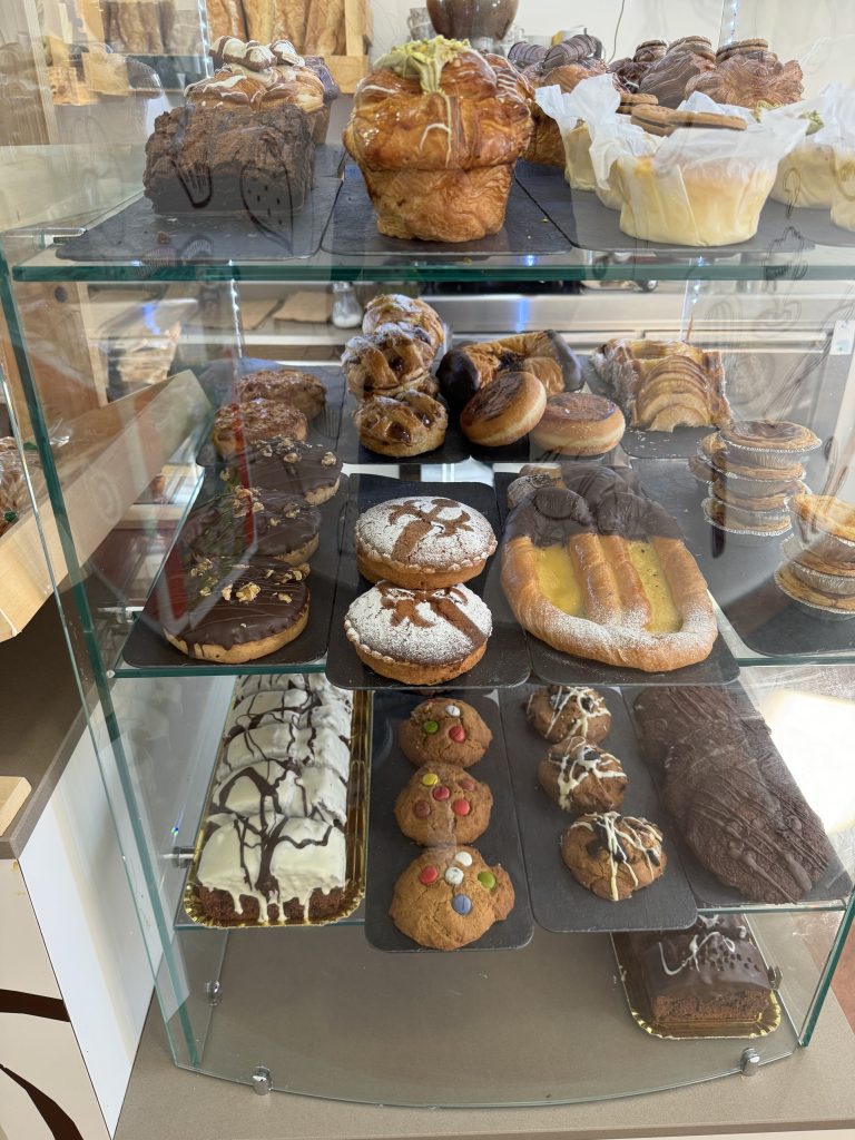 We caught her attention just before she crossed the street. “Pardon. Yummm! Where?” She spoke animatedly and pointed across the street. We understood only patisserie and that was enough!