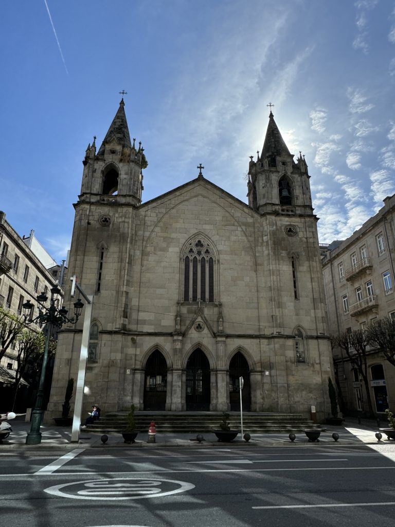 Once in Vigo, the pressure was on to get that second stamp! We hoped to use Iglesia de Santiago (St. James) de Vigo, almost around the corner, down a long flight of stone steps. It was closed! We tried a couple cafes nearby, feeling a bit desperate. No luck. Bad news!