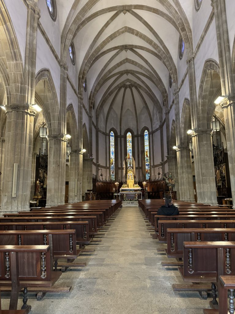 Back at the hotel, the receptionist assured us the church would reopen near dinner time for mass. So, we went back, relieved the doors were open. We tiptoed inside, around the entire perimeter, but … no stamp table.
